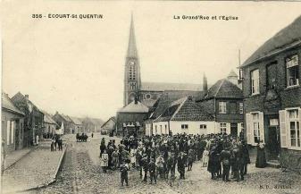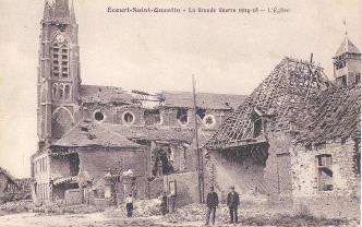 ECOURT Eglise Mairie et Ecoles vue Nord 1918 |