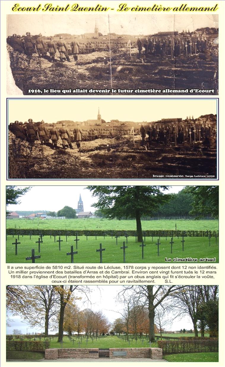 Merci à M. Serge LEBLANC pour cette page sur la mise en place du cimetière allemand route de Lécluse à Ecourt St Quentin