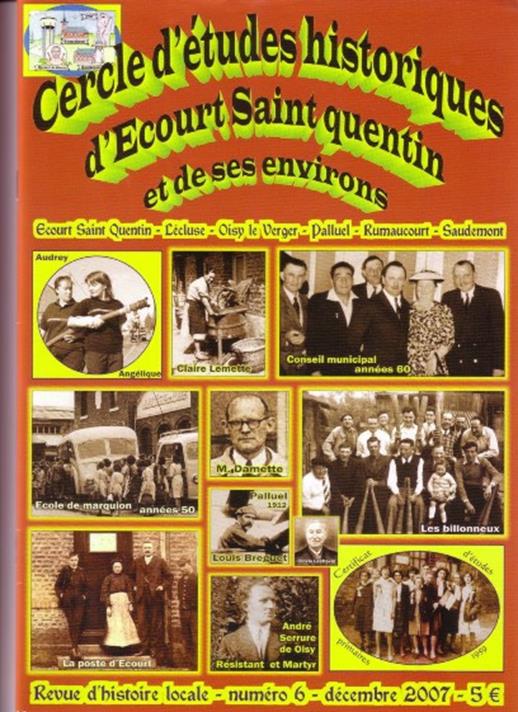 · Editorial · Les années 1951 à 1955 (suite) · Histoire de Saudemont : Doléances de 1789 · Comme une lettre à la Poste (suite) · Abandon d’un nouveau né à Oisy · Photos de pompiers et majorettes d’Ecourt · André Serrure martyr de la résistance · Photos des communions de Oisy et Rumaucourt · Photos Lécluse 1920 et Palluel 1914 à1918 · Le marais de Palluel : entre nautisme et aéronautique · Le travail du lin autrefois · Les maires d’Ecourt St Quentin de 1790 à nos jours (suite) · Photos écoles d’Ecourt St Quentin