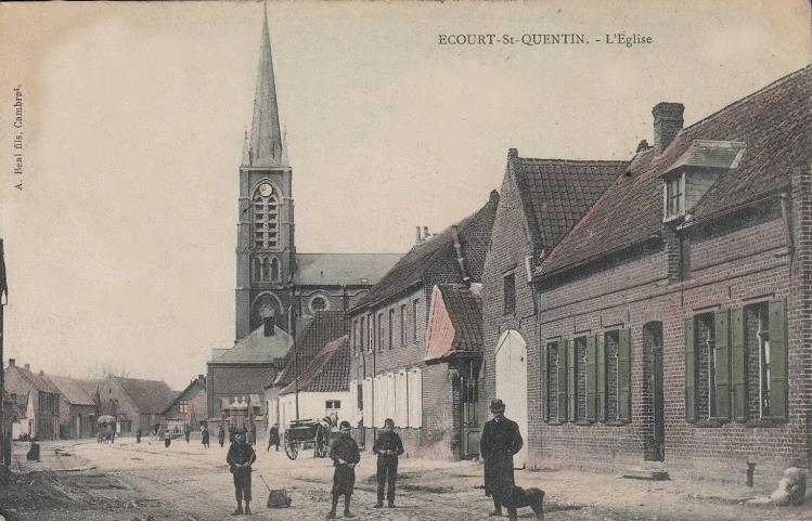 ECOURT Grand-rue ( avant d’être appelée rue Henri Barbusse) vers Eglise Mairie et Ecoles vue Nord 1904 (Clic sur Photo pour retour)
