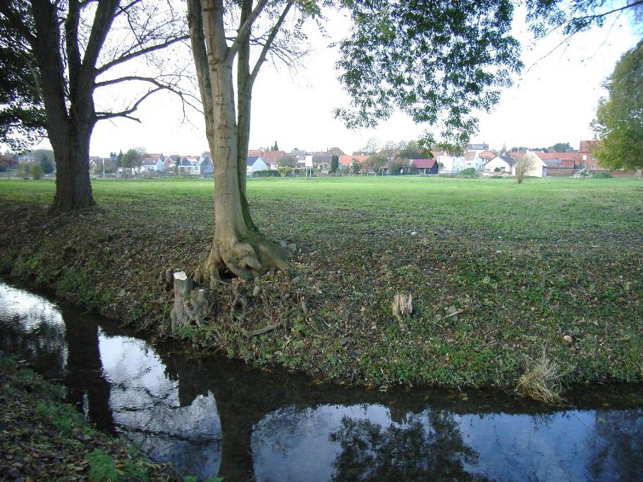 Ecourt St Quentin La rivière l’Hirondelle et en fond le Faubourg