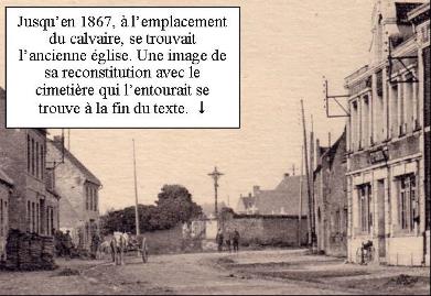 Certains indices permettent de reconstituer la composition du village il y a quelques siècles. L’agglomération principale allait depuis l’église entourée de l’ancien cimetière, près de la Place Carnot actuelle (photo de gauche), jusqu’au calvaire, situé maintenant au centre du village, (photo de droite).