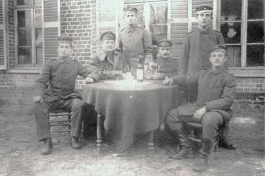 Soldats allemands prenant leur aise devant une maison d’Ecourt . Les habitants doivent obligatoirement loger plusieurs soldats en leur assurant le gite et le couvert! |