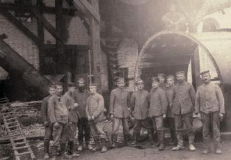 1917 Les besoins de plus en plus importants en matières premières accentuent le pillage , ici à la Fabrique Godefroy, démontage des cuves de la sucrerie |