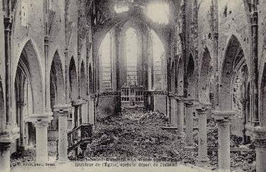 12 mars 1918, un obus anglais fit s’écrouler la voute - Les autres coups portés le furent par des tirs anglais le 2 septembre 1918 et des tirs allemands le 3 septembre 1918 |