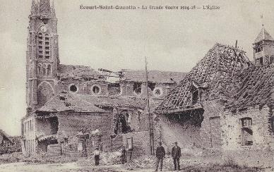 1917 L’église d’Ecourt est transformée en hôpital . Le 12 mars 1918, un obus anglais en faisant s’écrouler la voute, causa la mort de 120 Allemands |