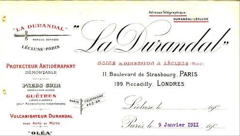 Charles Dutordoir était ingénieur et grâce à son esprit inventif, il fonda une usine de fabrication d’enveloppes pneumatiques ; brevet déposé sous la marque ‘La Durandal’.