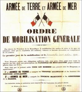 Le 1er août dans l’après-midi, on a entendu la cloche sonner le tocsin. En moins de cinq minutes, tout le monde s’est retrouvé dans la rue pour se rassembler ensuite devant le presbytère, aujourd’hui le numéro 5 de la rue du général De Gaulle. Une grande animation y règne. « C’est la guerre, on mobilise ! ». Les visages ont l’air grave et résigné, seuls les garçons sont excités. Puis quelqu’un se fait entendre : « On va les avoir, à Noël tout est fini ! ». Partout dans les villages, des affiches spéciales annonçant la mobilisation sont apposées. On les lit pour en avoir la certitude. Les deux jours suivants, dans chaque maison c’est la préparation et le départ de ceux qui sont appelés pour défendre la patrie, avec l’espoir que cette guerre sera courte. Les mères de famille se retrouvent seules avec leurs enfants.